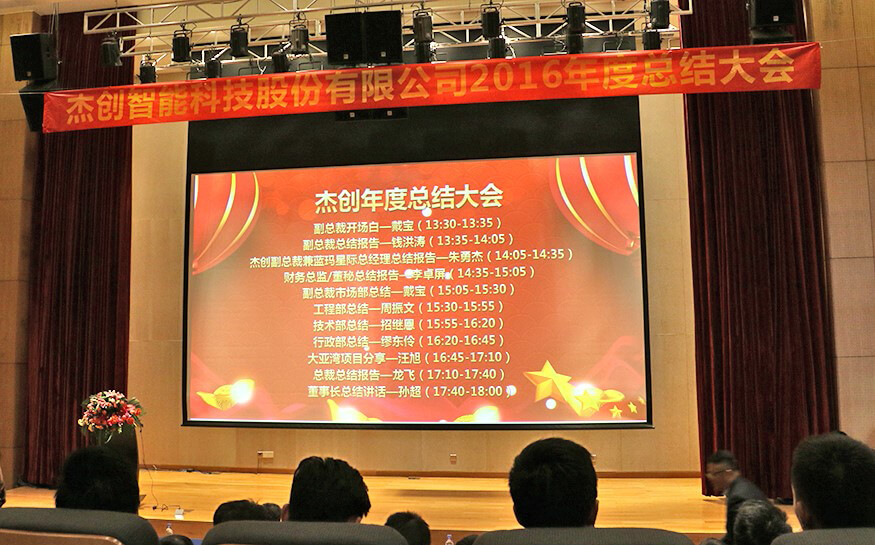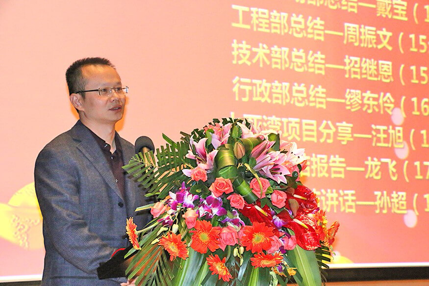 总结大会上,在公司副总裁戴宝先生激情洋溢的开场白后,副总裁钱洪涛先生、Z6.COM-尊龙集团智能董事兼蓝玛星际总经理朱勇杰先生、财务总监兼董秘李卓屏女士、副总裁戴宝先生、工程部总监周振文先生、技术部总监招继恩先生、行政部总监缪东伶女士、工程部副总监汪旭先生、总裁龙飞先生先后登台,分别做了2016年度工作总结。